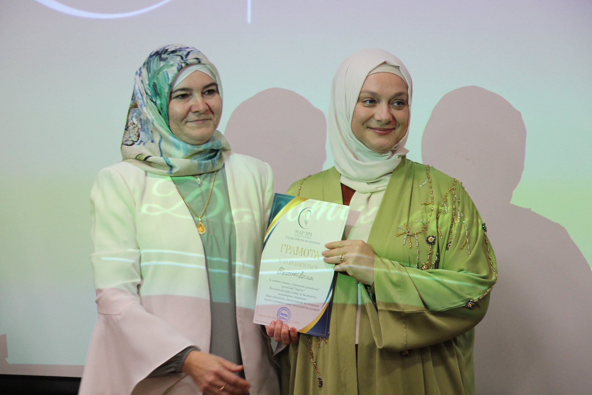 — ГО «Мар’ям» понад 20 років є особистим прикладом сталого розвитку, жіночої взаємної підтримки та служіння суспільству. Від імені Ліги мусульманок України щиро вітаємо вас і бажаємо сил, терпіння й натхнення у подальшій роботі. Нехай Аллаг приймає ваші благі справи й буде вами задоволений!
